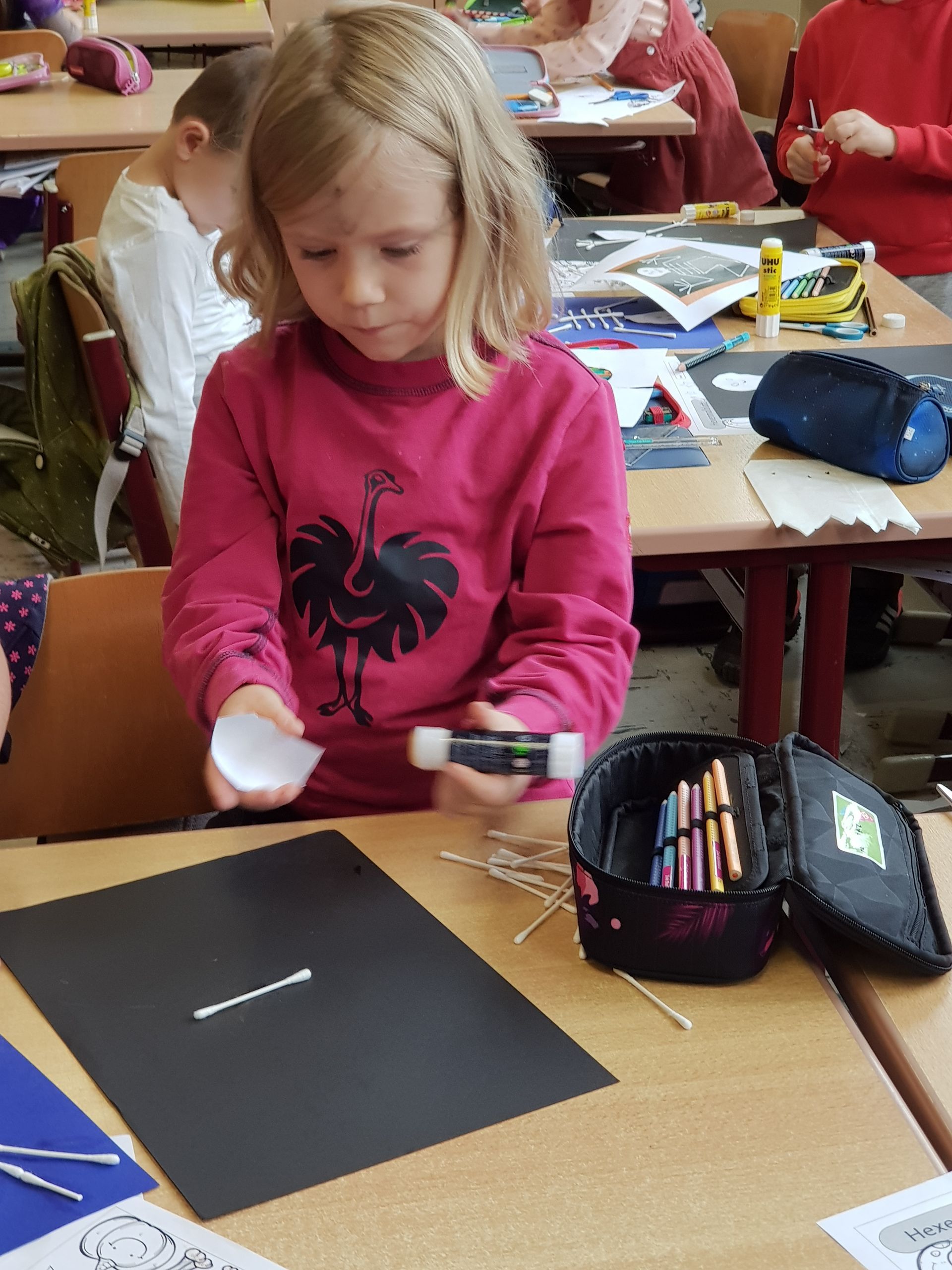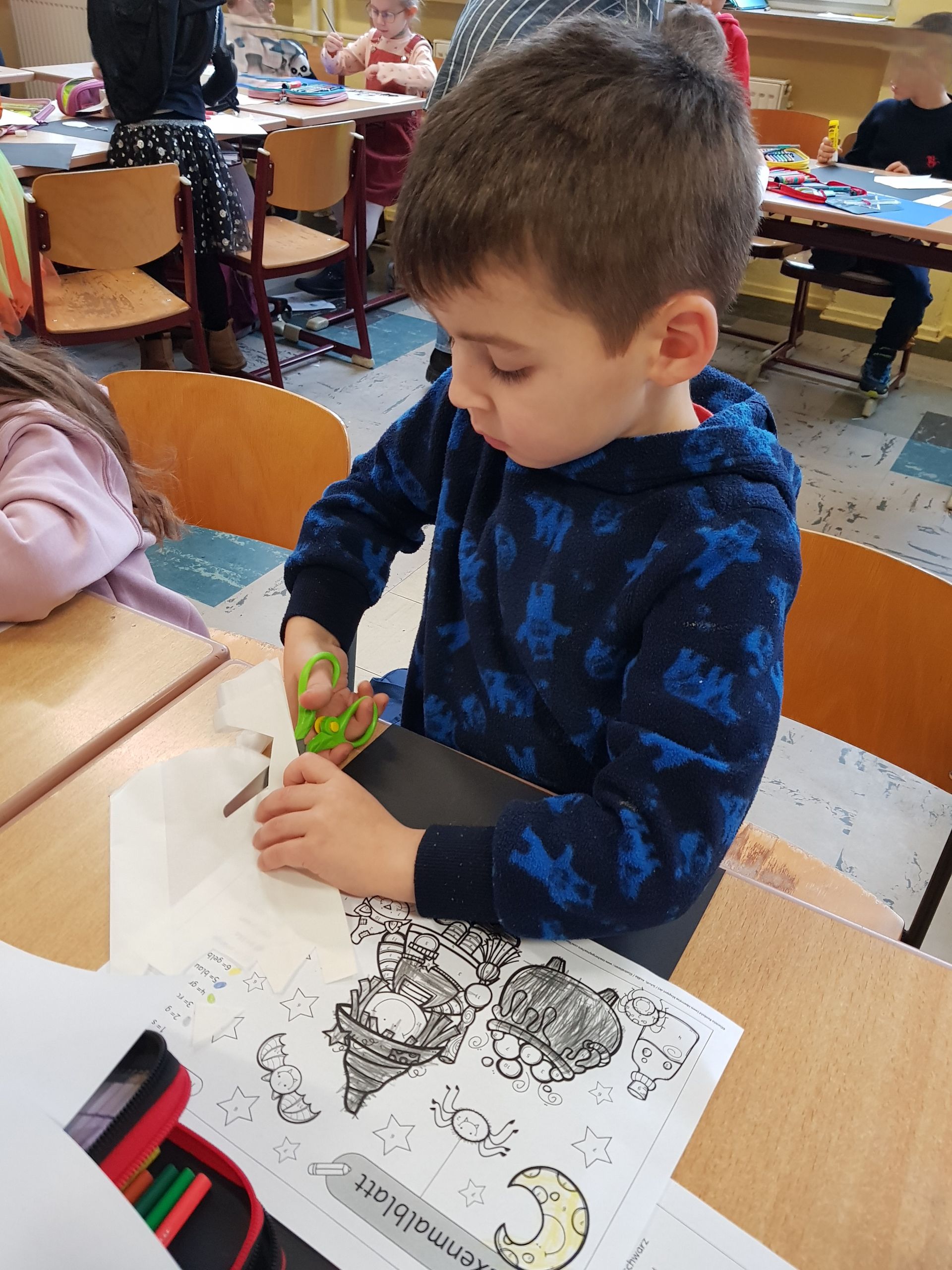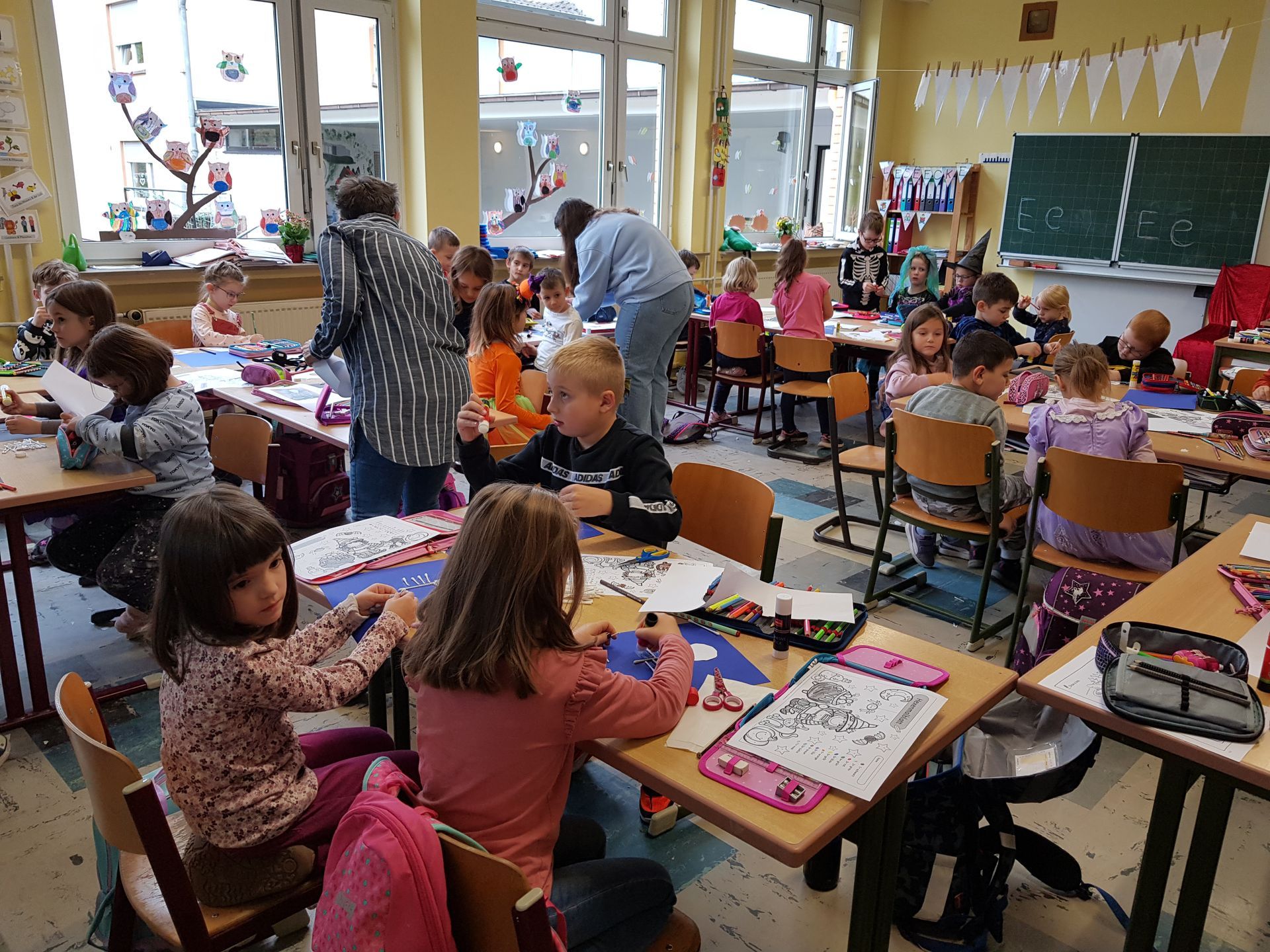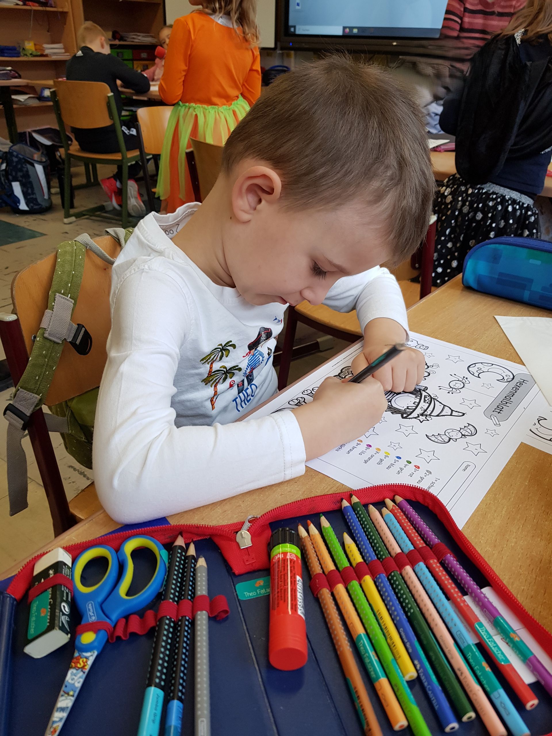 Beim Besuch in der Grundschule konnten die Kinder eine „gruselige“ Unterrichtsstunde erleben. Es war schließlich Halloween und der Unterricht wurde passend gestaltet. So haben die Kinder gemeinsam Gespenster und Skelette gebastelt und Hexenbilder nach Zahlen gemalt. Ein gelungener Besuch, der lange in Erinnerung bleibt.