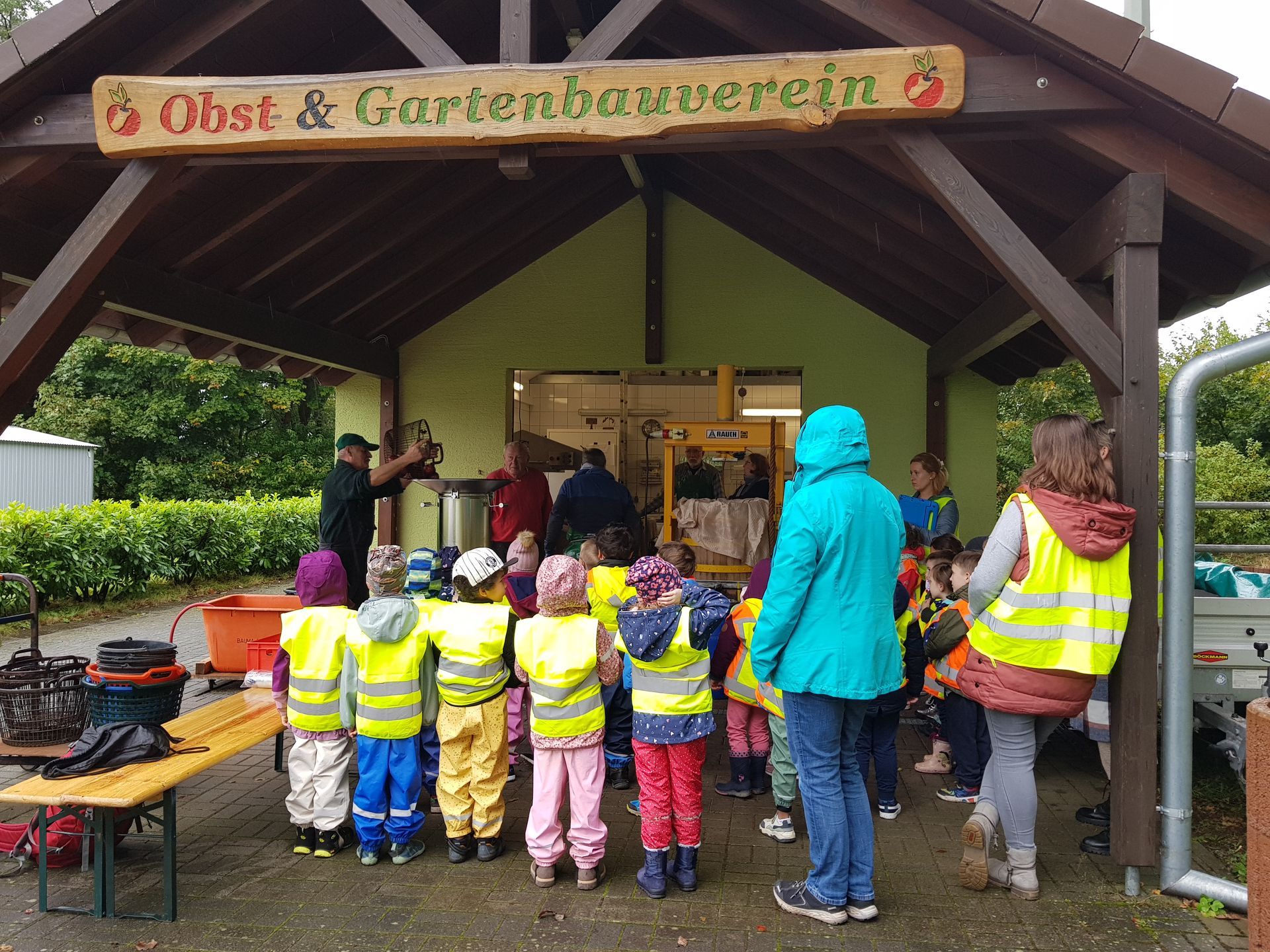 Highlight der Projekttage war der Besuch beim Obst- und Gartenbauverein in Miesenbach. Hier hatten die Vorschulkinder die Gelegenheit beim Herstellen von Apfelsaft mitzumachen und ihn natürlich auch direkt zu probieren. Ein herzliches Dankeschön an alle, die uns bei diesem tollen Ausflug unterstützt haben.