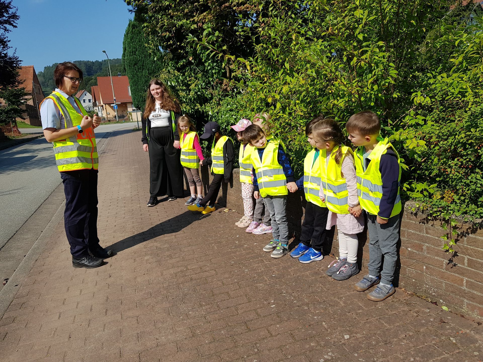 Das erste Thema mit dem wir uns intensiv beschäftigen, ist die Verkehrserziehung. Gemeinsam mit den Ampelinis bereiten sich die Vorschulkinder auf die Fußgängerprüfung vor. Dass sie fleißig geübt haben konnten die Kinder beim Besuch der Verkehrspolizei beweisen.