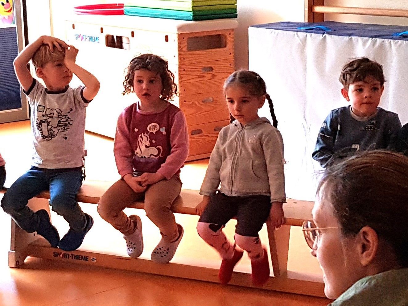Sie sahen sich ein Bilderbuch an und hörten dazu eine Geschichte, in der sich 2 Kinder stritten und später wieder versöhnten, in dem sie sich beieinander entschuldigten.
