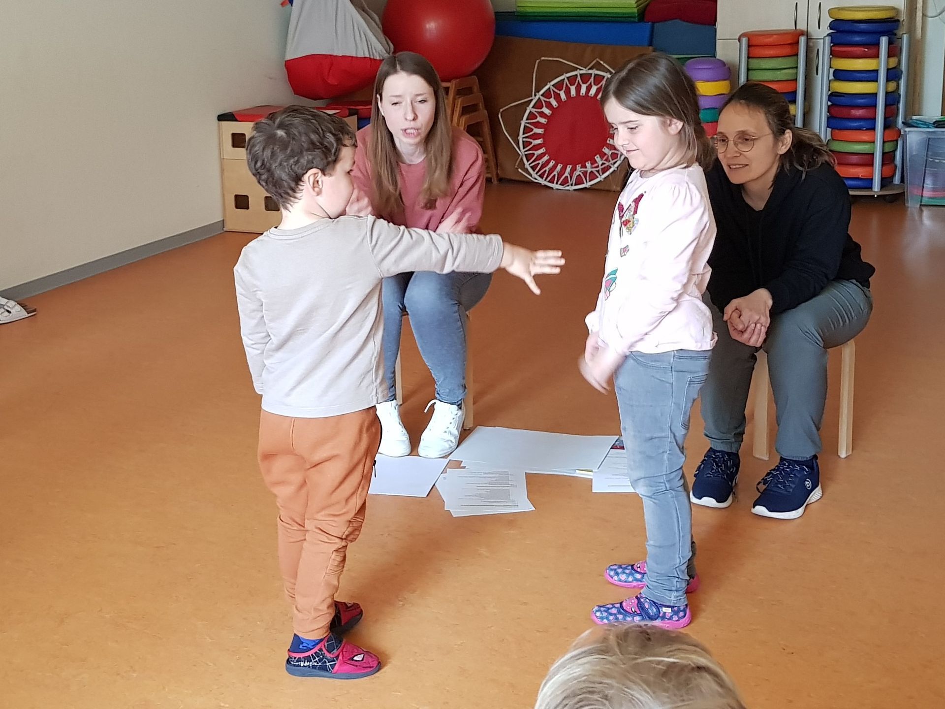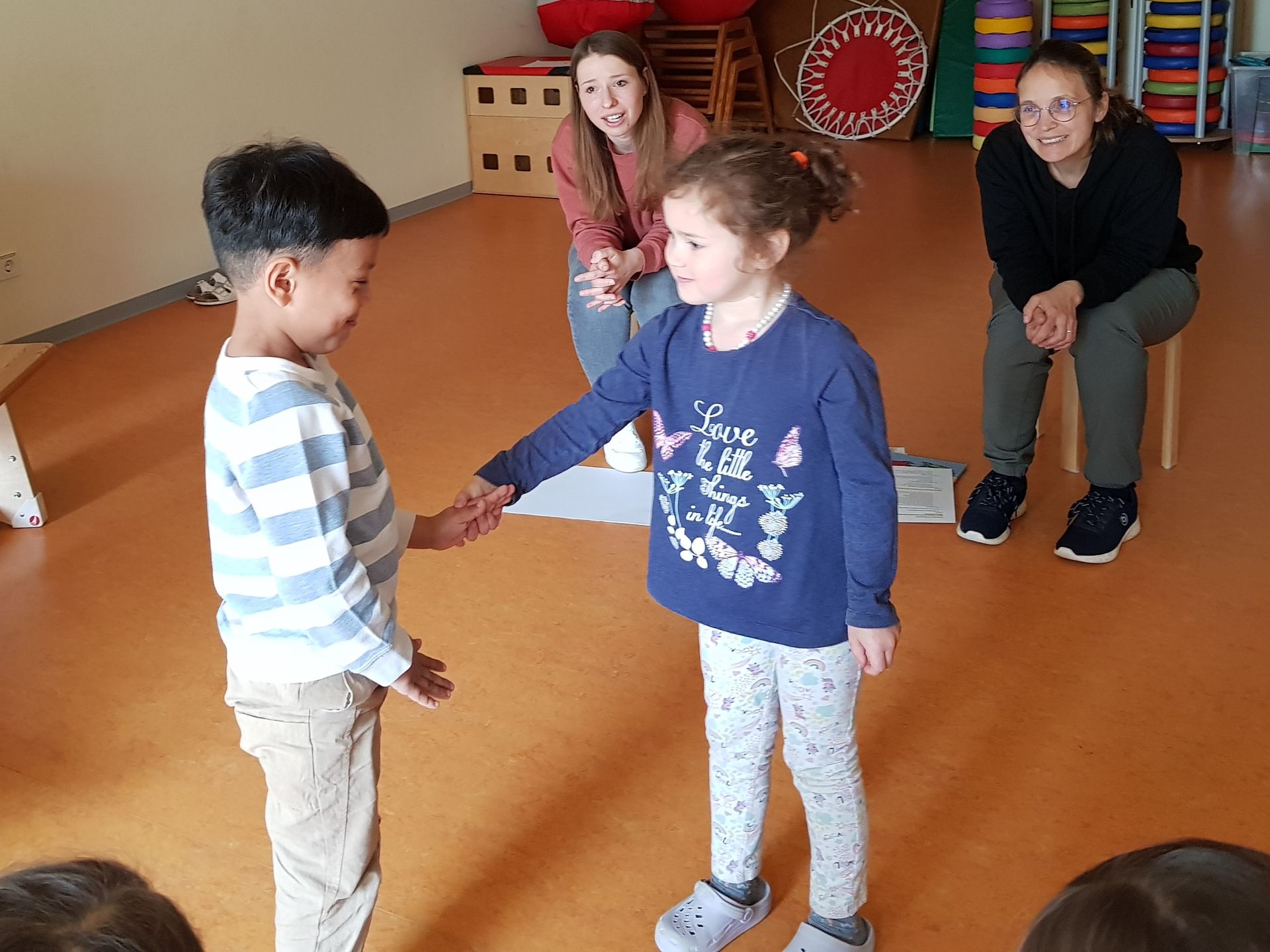 An 2 Vormittagen bearbeiteten die Kita-Kinder mit den Kita-Sozial-Arbeiterinnen Frau Melissa Cronauer und Frau Melanie Lauer das Thema „richtig streiten“.